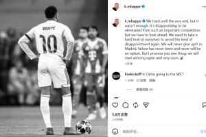 体育资讯04月17日讯 皇马在欧冠1/4决赛被拜仁淘汰,姆巴佩赛后发表社媒表示遗憾并鼓舞球迷。